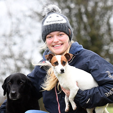 After finishing her A-Levels, Katy's enjoying doing the things she loves; competing her two horses and spending time in the outdoors. She has two dogs called Murphy and Mo. Murphy is a scruffy long haired Jack Russell and Mo is a Border Terrier X Poodle.